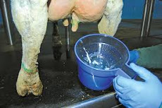 We can use a strip cup at the farm level test as illustrated below; mastitis lowers the milk quality (i.e. shelf life) which causes milk rejection by the clerks.